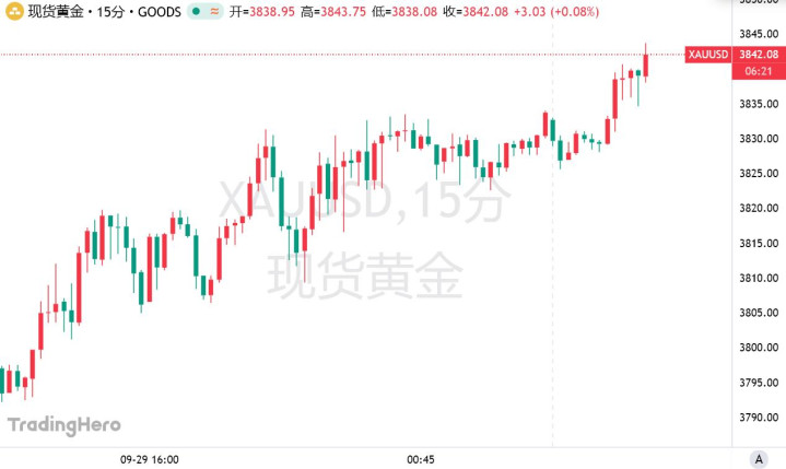 周一,迫在眉睫的美国政府潜在关门危机震动市场并导致美元走低,黄金再度刷新历史新高至3830美元上方。周二亚盘,黄金涨势不停,并上破3840美元。